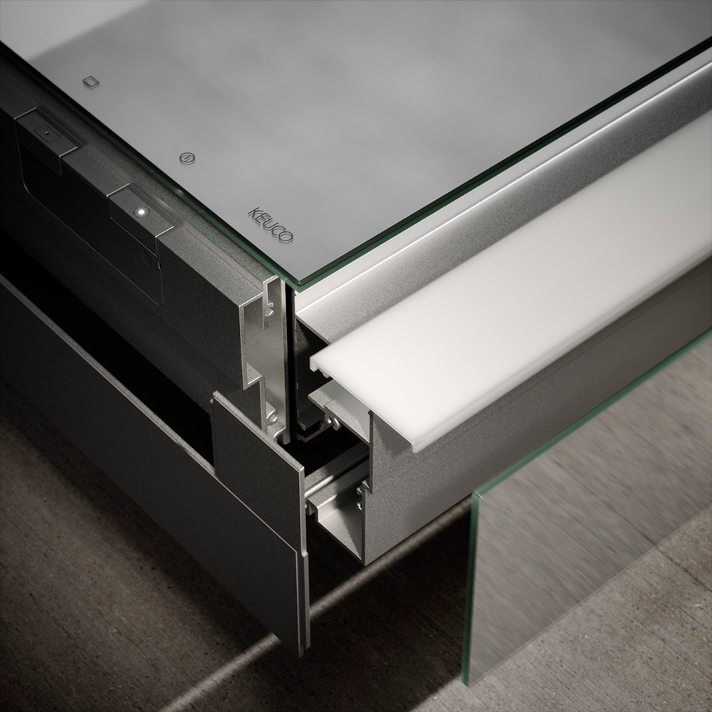 KEUCO Phönix ist sehr clean im Look, nicht zuletzt wegen des grifflosen Designs. Klare Linien fügen sich in der geradlinigen Badarchitektur ein. Exakte Kanten heben das moderne Äußere des Spiegelschranks hervor. Für ein absolut reduziertes Bild am Waschtisch lässt sich neben der Wandvorbauvariante ein Einbaumodell wählen.