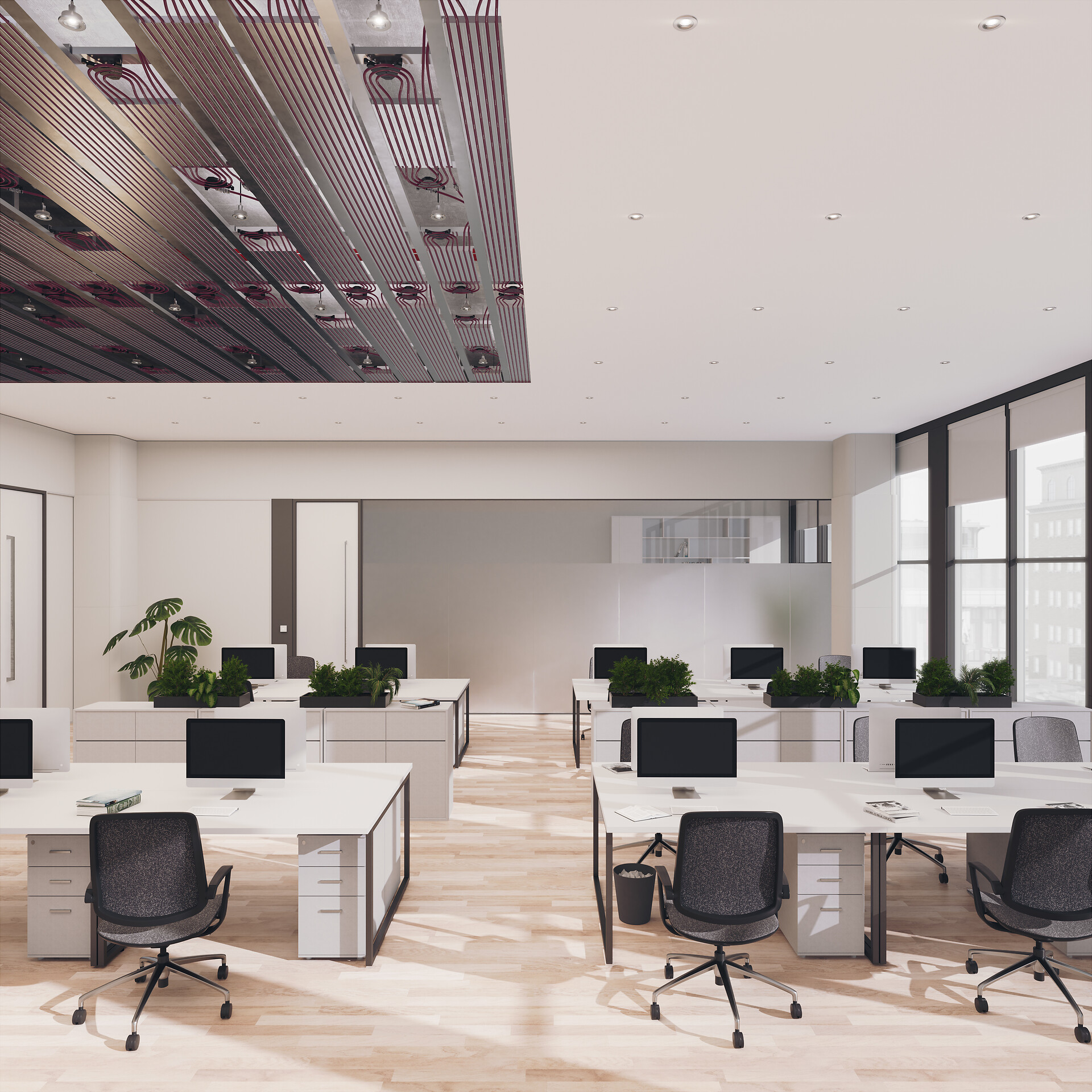 Die Kühl-/Heizdecke lässt sich vielseitig im Nicht-Wohnbau, Wohnbau und bei Light-Commercials einsetzen und arbeitet – anders als Klimaanlagen – nahezu geräuschlos. Sie ist für akustische und nichtakustische Gipskarton-Deckenflächen geeignet. Durch frei planbare Gipskartondecken wird eine architektonisch ansprechende Deckengestaltung ermöglicht. Mit den bewährten REHAU Einzelraumregelungen NEA und NEA SMART 2.0 lässt sich die Raumtemperatur zuverlässig regeln.